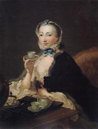 | Keywords: De Fassin, Woman drinking coffee.jpg Artwork en Woman drinking coffee century 18 painting Collection Van Zuylen Liège Belgium Le siècle des Lumières dans la principauté de Liège museumcatalogus Musée de l'Art wallon Luik 1980 p 192 other versions Custom license marker 2013 06 21 PD-old-100 Nicolas Henri Joseph de Fassin 18th-century portrait paintings of unidentified women 1770c 18th-century portrait paintings not categorised by year 18th-century oil portraits of sitting women at half length 1770c Lace caps in art 1770c Tea pots in art Uploaded with UploadWizard |