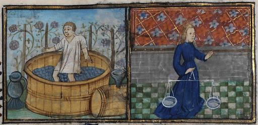 | Keywords: De Grey Hours f.9.r September- wine-pressing; Libra.png author Llyfr Llyfr Oriau 'De Grey' A medieval Book of Hours probably written for the De Grey family of Ruthin c 1390 ~ 1390 vellum Institution National Library of Wales Peniarth MS 4 object history In 1895 the volume was purchased by Henry Yates Thompson and it remained as MS 27 in his collection until it was sold at Sotheby's 23 March 1920 lot 42 and purchased by Miss Gwendoline E Davies of Gregynog Powys The 'De Grey' Hours along with the 'Sherbrooke Missal' NLW MS 15536E were presented to the National Library of Wales by Miss Margaret S Davies Gregynog in 1951 credit line accession number 4395396 Cc-zero NLW MS 15537C The 'De Grey' Hours Images uploaded as part of NLW - WMUK collaboration |