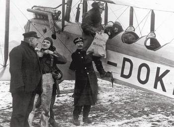 | Keywords: De Havilland DH 9.jpg de Havilland DH 9 Mail-bags are brought on board before take off from Copenhagen to Hamburg of a DDL de Havilland DH 9 airplane - the aircraft with built-in AC - in 1923 Free lance pilot Leo Sørensen in cockpit later became managing director of Copenhagen Airport Kastrup 1920a http //images flysas com SAS Scandinavian Airlines PD-Denmark50 Files uploaded by Russavia Media from SAS Scandinavian Airlines Media from SAS Scandinavian Airlines check needed Uploaded with VicuñaUploader Det Danske Luftfartselskab Airco DH 9 |