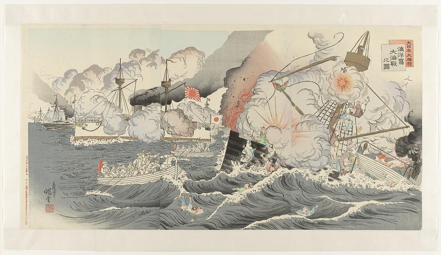 | Keywords: De heroïsche strijd bij Jiuliancheng-Rijksmuseum RP-P-2010-310-54.jpeg accession number RP-P-2010-310-54 onbekendonbekend; Akiyama Buemon credit line nl Japanse troepen verslaan het Chinese leger nabij Jiuliancheng in Mantsoerije De slag bij Jiuliancheng vond plaats op 26 oktober 1894 tijdens de Eerste Chinees-Japanse Oorlog 1894-1895 Label Line onbekend 1894 kleurenhoutsnede; blinddruk; lijnblok in zwart met kleurblokken; metaalpigmenten; polijsten Collection prenten; Japan collectie blad Height mm 368 blad Width mm 730 exhibition history paper object history Acquisition 2009-10-13 object type prent PD-US PD-old Data and photography rights All data and all images made available through the API are either in the public domain or are subject to a CC0 license https //www rijksmuseum nl/en/api/terms-and-conditions-of-use cc-zero place of creation Japan http //www rijksmuseum nl/collectie/RP-P-2010-310-54 http //hdl handle net/10934/RM0001 COLLECT 489955 handle De heroïsche strijd bij Jiuliancheng Uploaded with GWToolset Rijksmuseum RP-P-2010-310-54 http //www rijksmuseum nl/media/assets/RP-P-2010-310-54 Images uploaded by Fæ Images from the Rijksmuseum Japanese 19th-century prints in the Rijksmuseum Amsterdam |
