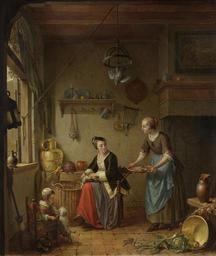 | Keywords: De keuken Rijksmuseum SK-A-1624.jpeg accession number SK-A-1624 Willem Joseph Laquy credit line nl Interieur van een keuken in het midden zit een jonge vrouw bij een mand een patrijs te plukken Rechts komt een keukenmeid aangelopen met een dienblad met vissen Links zit een kind in een stoel met een hondje te spelen Rechtsvoor een koperen ketel met verschillende soorten groente en een gebroken kruik Rechtsachter een haard waarboven een schilderij hangt Tegen de achterwand een plank met borden en kruiken Links bij het geopende venster een koperen melkbus en ander huisraad Aan het plafond hangt een wildkroon met patrijs drager Height cm 62 5 drager Width cm 53 exhibition history 2007-2007 Milkmaid by Vermeer and Dutch Genre Painting Tokyo Institution Rijksmuseum Technique oil canvas object history Acquisition 1895-04-01 object type Potential derivatives exist check http //commons wikimedia org/w/index php search Rijksmuseum+SK-A-1624 this search PD-US PD-old Data and photography rights All data and all images made available through the API are either in the public domain or are subject to a CC0 license https //www rijksmuseum nl/en/api/terms-and-conditions-of-use cc-zero place of creation http //www rijksmuseum nl/collectie/SK-A-1624 De keuken Q17324404 Uploaded with GWToolset De keuken Rijksmuseum SK-A-1624 http //www rijksmuseum nl/media/assets/SK-A-1624 Images uploaded by Fæ Images from the Rijksmuseum German paintings in the Rijksmuseum Amsterdam Willem Joseph Laquy |