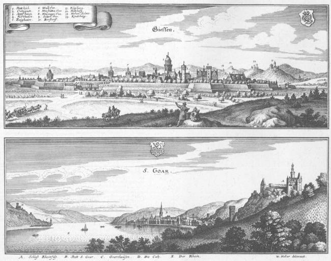 Keywords: De Merian Hassiae 106.jpg 105 107 Historic views of Gießen Sankt Goar 1605 in Gießen