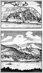 Keywords: De Merian Mainz Trier Köln 071.jpg Upper image Pfalzel today a borough of Trier - Lower image Zell/Mosel Historic views of Trier Trier-Pfalzel History of Zell Mosel 070 072