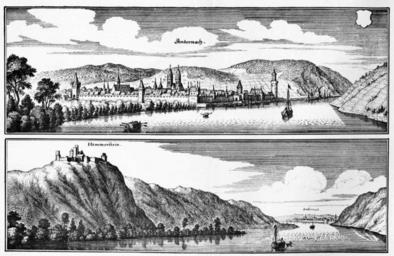 Keywords: De Merian Mainz Trier Köln 084.jpg 083 085 History of Andernach Andernach in art Burg Hammerstein