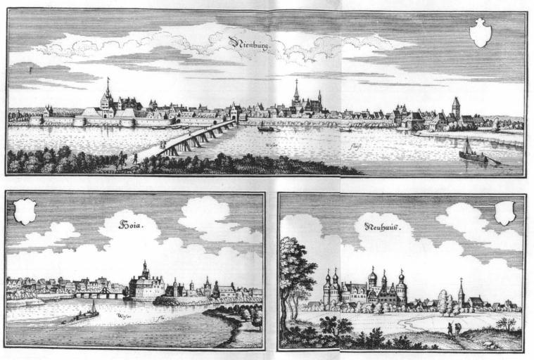 Keywords: De merian Westphaliae 143.jpg 142 144 Nienburg/Weser History of Hoya Paderborn in the 17th century Schloß Neuhaus Schloss Hoya Schloss Neuhaus Paderborn Stadtbefestigung Nienburg