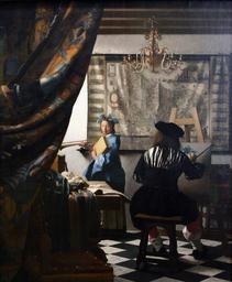 | Keywords: De Schilderkunst.jpg File Jan Vermeer van Delft 011 jpg Artwork Creator Johannes Vermeer LangSwitch Die Malkunst <ref>http //bilddatenbank khm at/viewArtefact id 2574 KHM Bilddatenbank </ref> The Art of Painting De schilderkunst Alternate titles Die Künstlerwerkstatt <ref>http //www dhm de/gos-cgi-bin/linz/satz cgi Objekt li001103 Datenbank Sammlung des Sonderauftrages Linz Datenblatt li001103 </ref> ~ 1666-1668 oil canvas cm 120 100 Kunsthistorisches Museum object history Provenance Catharina Bolnes ca 1631-1688 ProvenanceEvent 1676-02-24 conveyance Maria Thins ca 1593-1680 Delft Gerard van Swieten 1772 Vienna Gottfried van Swieten 1803 Vienna - 1803 1813 LangSwitch the estate of de erven Gottfried van Swieten ProvenanceEvent 1813 purchase Johann Rudolf Graf Szernin 1757-1845 Pieter de Hooch Gräflich Czerninsche Galerie Vienna ProvenanceEvent 1940 acquisition Adolf Hitler 1889-1945 Führermuseum 1096a Linz by 1945 Central Collecting Point 1284 Munich GG_9128 Vienna Transferred from nl wikipedia GG_9128 Other versions <table style background-color EEEFFF > <tr> <td> 500x120px none none span </td> <td valign top > File Jan Vermeer van Delft 011 jpg<br />Version from 10 000 Meisterwerke der Malerei</td> </tr> </table> PD-old-100 LangSwitch Hinweis References Notes Noten <references /> original upload log page nl wikipedia De_Schilderkunst jpg 2006-06-19 16 51 LemmingS 1100×1287× 125797 bytes <nowiki></nowiki> ImageNote 1 881 985 87 38 1714 2078 2 LangSwitch Bezeichnet Signed Signé Gesigneerd I Ver-Meer ImageNoteEnd 1 ImageNote 2 774 395 784 59 1714 2078 2 LangSwitch Inschrift Inscription Inscriptie NOVA XVII PROVINCIARUM GERMAINIAE INFERIORIS DESCRIPTIO / ET ACCURATA EARUNDEM DE NOVO EMENDATA RECTISSIME EDITA PER NICOLAUM PISCATOREM ImageNoteEnd 2 The Art of Painting by Johannes Vermeer Leo Belgicus |