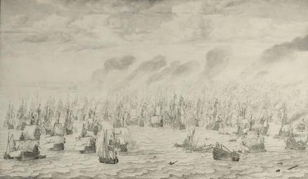 | Keywords: De slag bij Terheide - The Battle of Schevening - August 10 1653 (Willem van de Velde I, 1657).jpg Artwork Creator Willem van de Velde I title The Battle of Terheide 10 August 1653 episode from the First Anglo-Dutch War 1652-54 La bataille de Terheide 10 août 1653 episode de la Première Guerre anglo-néerlandaise 1652-54 De zeeslag bij Terheide 10 augustus 1653 episode uit de Eerste Engelse Zeeoorlog 1652-54 Alternate titles Zeeslag bij Ter Heide Scheveningen 10 aug 1653; episode uit de Eerste Engelse zeeoorlog 1652-1654 <ref>http //www rkd nl/rkddb/dispatcher aspx action search database ChoiceImages search priref 10189 RKDimages Kunstwerknummer 10189 </ref> 1657 Ink oil canvas cm 170 289 Rijksmuseum SK-A-1362 SK-A-1363 and SK-A-1364 Onderdeel van een reeks van vier schilderijen van zeeslagen waarin Cornelis Tromp betrokken was zie voor de overige schilderijen SK-A-1362 SK-A-1363 and SK-A-1364 W v Velde f Aº 1657 't gajoot van Velde signature/date lower left object history ProvenanceEvent 1657 commission Harpert Tromp ProvenanceEvent 1875 acquisition Nederlandsch Museum voor Geschiedenis en Kunst The Hague ProvenanceEvent 1887 transfer Rijksmuseum Amsterdam - 1921 1931 loan Nederlandsch Historisch Scheepvaartmuseum Amsterdam http //www rijksmuseum nl/en/collection/SK-A-1365 SK-A-1365 Other versions Assessments 1 Battle of Scheveningen 2 PD-old-100 LangSwitch References Noten <references /> Paintings by Willem van de Velde I in the Rijksmuseum Amsterdam Battle of Scheveningen 10 August 1657 paintings Rijksmuseum Amsterdam - Room 2 15 Grisaille |