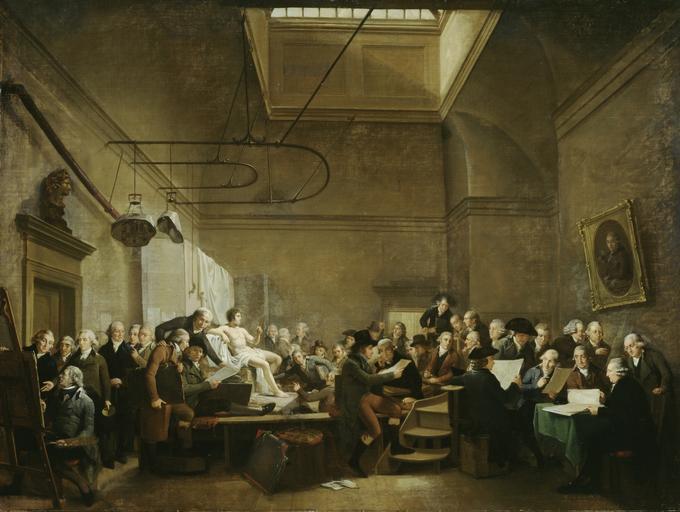 | Keywords: De tekenzaal van de Maatschappij Felix Meritis Rijksmuseum SK-C-538.jpeg nl De tekenzaal van de Maatschappij Felix Meritis te Amsterdam met portretten van kunstenaars verzamelaars van schilder- en tekenkunst en enkele kunstmakelaars Er wordt getekend naar het naaktmodel Aanwezig zijn de kunstenaars van links naar rechts Pieter van Winter N Szn Josephus Augustinus Brentano Jacobus Lauwers gezeten aan een ezel Pieter de Smeth van Alphen Gerrit Muller een onbekende Daniël Dupré Jacques Kuyper Adriaan de Lelie zittend met hoed Lambertus Antonius Claessens en boven hem rechts van het model Philippus van der Schley Jan IJver Jan Hulswit Dirk Versteegh met uitgestoken arm Pieter Fouquet Jr Hermanus Fock H Peereboom wijzend naar het model Cornelis van Heurn Jan Evert Grave Jr Jacob de Vos Wz vooraan met hoed Gabriël van Rooijen Jan Tersteeg Jacob Smies Chrétien du Bois Jan Kamphuysen Hermanus Numan boven de anderen uitstekend Jan Ekels Jr Pieter Barbiers Pz Roelof Meurs Pruyssenaar Steven Goblé Jacob de Vos Professor Andreas Bonn Jodocus Clemens van Hall Reinier Vinkeles Johannes Goll van Frankenstein Bernardus de Bosch Hendrick van Eijl Sluyter Jan Gildemeester Jansz Jeronimo de Bosch Cornelis Sebille Roos en aan de muur het portret van Jean Grandjean ; Adriaan de Lelie 1755-1820 olieverf op doek 1801 Height cm 100 Width cm 131 exhibition history 2004-2008 Het Rijksmuseum aan de Grens - B Enschede Institution Rijksmuseum Technique oil canvas object history Acquisition 1889-11-27 object type Potential derivatives exist check http //commons wikimedia org/w/index php search Rijksmuseum+SK-C-538 this search PD-US PD-old-100 Data and photography rights All data and all images made available through the API are either in the public domain or are subject to a CC0 license https //www rijksmuseum nl/en/api/terms-and-conditions-of-use cc-zero place of creation A Quarles van Ufford 'Kunstenaars and liefhebbers kunst uit de tijd van de Verlichting' Museumtijdschrift 2007 nr 3 p 20-23 afb p 23 J Knoef 'De genootschapsportretten van Felix Meritis' Jaarboek van het Genootschap Amstelodamum 35 1938 p 203-218 http //www rijksmuseum nl/collectie/SK-C-538 De tekenzaal van de Maatschappij Felix Meritis Q17342894 Uploaded with GWToolset De tekenzaal van de Maatschappij Felix Meritis Rijksmuseum SK-C-538 http //www rijksmuseum nl/media/assets/SK-C-538 Images uploaded by Fæ Images from the Rijksmuseum Paintings by Adriaan de Lelie in the Rijksmuseum Amsterdam Adriaan de Lelie |