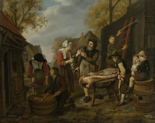 Keywords: De varkensslachter Rijksmuseum SK-C-259.jpeg nl De varkensslachter Tussen schuren achter een huis krijgt een man die bezig is een varken te slachten een glas bier aangereikt van een vrouw Rechts spelen enkele kinderen een jongen blaast een varkensblaas op links een knecht en een meid Height cm 79 5 Width cm 99 5 exhibition history 2004-2005 Van der Hoop - C Amsterdam Institution Rijksmuseum Technique oil canvas object history Acquisition 1885-06-30 object type Potential derivatives exist check http //commons wikimedia org/w/index php search Rijksmuseum+SK-C-259 this search PD-US PD-old-100 Data and photography rights All data and all images made available through the API are either in the public domain or are subject to a CC0 license https //www rijksmuseum nl/en/api/terms-and-conditions-of-use cc-zero place of creation http //www rijksmuseum nl/collectie/SK-C-259 De varkensslachter Q17342345 Uploaded with GWToolset De varkensslachter Rijksmuseum SK-C-259 http //www rijksmuseum nl/media/assets/SK-C-259 Images uploaded by Fæ Images from the Rijksmuseum Paintings by Jan Victors in the Rijksmuseum Amsterdam |