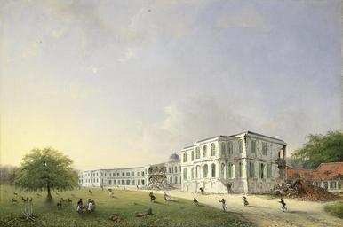 | Keywords: De voorzijde van het paleis te Buitenzorg na de aardbeving van 10 oktober 1834 Rijksmuseum SK-A-4025.jpeg accession number SK-A-4025 Willem Troost II credit line nl Gezicht op de voorzijde van het zwaar beschadigde buitenverblijf te Buitenzorg na de aardbeving van 10 oktober 1834 Inlanders hollen verschrikt over het grasveld links een groep vluchtende herten Op de voorgrond wordt mevrouw Baud-Van Braam verzorgd Pendant van SK-A-4024 drager Height cm 52 drager Width cm 77 exhibition history Institution Rijksmuseum Technique oil canvas object history Acquisition 1960 object type Potential derivatives exist check http //commons wikimedia org/w/index php search Rijksmuseum+SK-A-4025 this search PD-US PD-old Data and photography rights All data and all images made available through the API are either in the public domain or are subject to a CC0 license https //www rijksmuseum nl/en/api/terms-and-conditions-of-use cc-zero place of creation http //www rijksmuseum nl/collectie/SK-A-4025 De voorzijde van het paleis te Buitenzorg na de aardbeving van 10 oktober 1834 Q17335917 Uploaded with GWToolset De voorzijde van het paleis te Buitenzorg na de aardbeving van 10 oktober 1834 Rijksmuseum SK-A-4025 http //www rijksmuseum nl/media/assets/SK-A-4025 Images uploaded by Fæ Images from the Rijksmuseum Paintings in the Rijksmuseum Amsterdam |