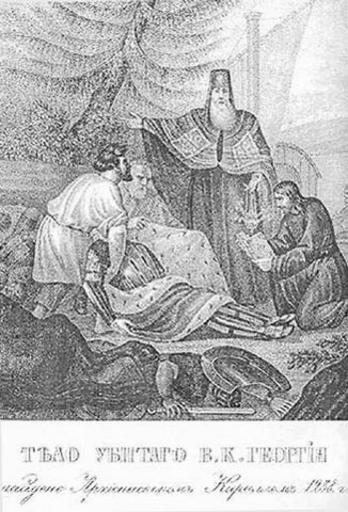 | Keywords: Dead body of Grand Duke Yuri II of Vladimir (Boris Chorikov).jpg en Dead body of Grand Duke Yuri II of Vladimir ru Тело убитого великого князя Гео гия найденное епископом Ки иллом 1238 год http //history sgu ru/authors/ aid 72 Creator Boris Chorikov 1836 PD-old-100 Yuri II of Vladimir in engravings Diocesan bishops of Rostov and Yaroslavl Mongol invasion of Rus Boris Chorikov | ||||
