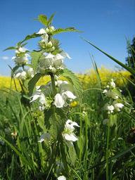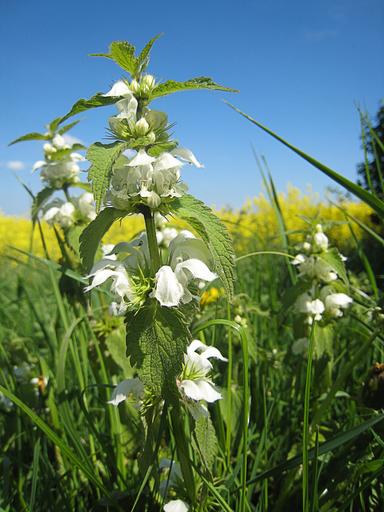 Keywords: dead nettle plant oilseed rape summer blue sky meadow