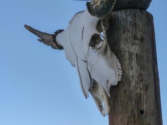 Keywords: deadman ranch ancient buildings wooden western style wild west ghost town heritage old building heritage site vintage antique british columbia canada scenery landscape tourist attraction countryside skull cow animal mammal trophy