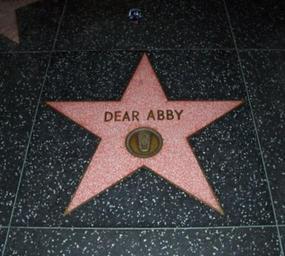 | Keywords: Dear Abby Walk of Fame 4-20-06.jpg Dear Abby star on the Hollywood Walk of Fame Transferred from http //en wikipedia org en wikipedia; transferred to Commons by User Common Good using http //tools wikimedia de/~magnus/commonshelper php CommonsHelper 2006-07-01 Original uploader was Benmckune at http //en wikipedia org en wikipedia Released into the public domain by the author en wikipedia Benmckune Original upload log page en wikipedia Dear_Abby_Walk_of_Fame_4-20-06 jpg 2006-07-01 22 11 Benmckune 365×328× 42148 bytes <nowiki>Dear Abby star on the Hollywood Walk of Fame </nowiki> Hollywood Walk of Fame stars Abby Dear |