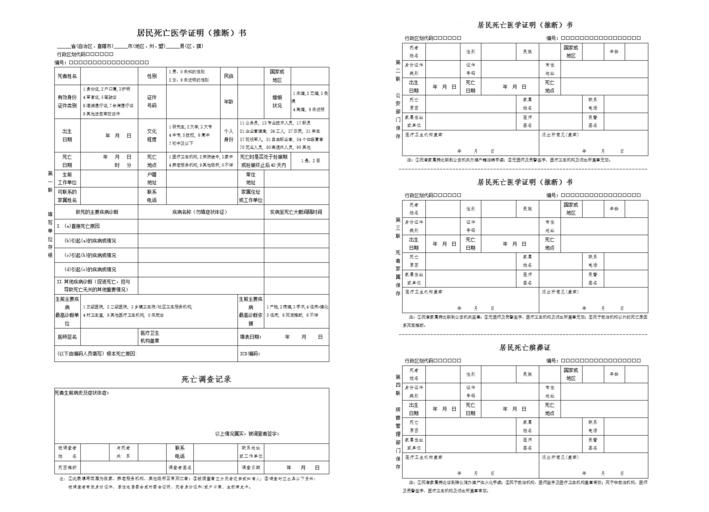 Keywords: Death certificate in Mainland China.png zh-cn 中国大陆 居民死亡医学证明(推断)书 模 2015-09-19 http //www moh gov cn/ewebeditor/uploadfile/2014/01/20140113134120237 xls 中华人民共和国国家卫生和计划生育委员会 中华人民共和国公安部 中华人民共和国民政部 other versions Custom license marker 2015 09 19 PD-PRC-exempt Death certificates |