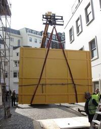 | Keywords: Death of Major Peirson Jersey Museum 2012 3.jpg John Singleton Copley's painting The Death of Major Peirson arrived in Jersey for exhibition for the first time in 2012 on loan from the Tate It was hoisted into the Jersey Museum on 3 April 2012 A window and part of a wall had to be removed to enable access to the gallery for the crated painting own photo 2012-04-03 09 46 38 Man vyi The Death of Major Peirson 2012 in Saint Helier Jersey Exhibitions in 2012 Crates Lifting Jersey Museum and Art Gallery Scaffolding in Jersey |