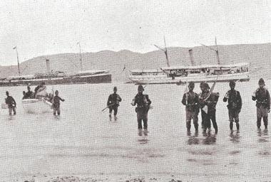 | Keywords: Debarkement expeditionaire troepen Celebes.jpg en Debarkement van troepen op Celebes Prins der Geillustreerde Bladen Niet bekend 1905 1905 in Indonesia Sulawesi in the 1900s Bone Wars military events in the Netherlands Indies colonial wars of the Netherlands PD-old-100 |