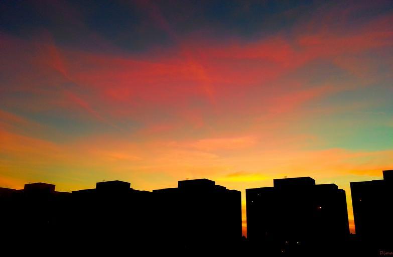 Keywords: debrecen hungary in the evening sunset building lights buildings urban house evening light