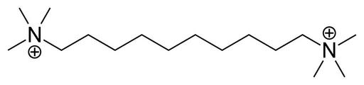 Keywords: Decamethonium.svg en 2D structure of muscle relaxant decamethonium Syncurine Own Harbin 2009-09-06 Neuromuscular blocking agents Nicotinic agonists Quaternary ammonium compounds