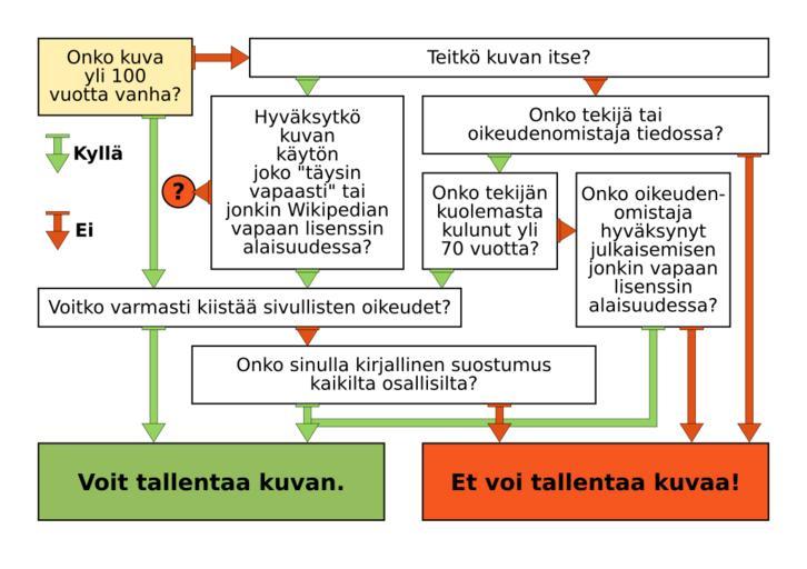| Keywords: Decision Tree on Uploading Imagesv2 fi.svg Decision Tree on Uploading Images Finnish version Suomenkielinen versio kuvien lataamisen päätöksentekopuusta Own work based on Image Decision Tree on Uploading Imagesv2 svg 2008-03-30 Antti Palsola Apalsola based on work of Stefan Lew and WolfgangW See gallery Handling Images in commons/Copyright tutorial Wikipedia decision diagrams Ohjeet | ||||