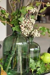 Keywords: deco table decorations vase glass green ivy decoration blossom bloom floral decorative fruits