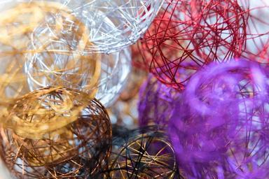 Keywords: deco wire ball decoration wire color colorful farbenpracht glass gold purple macro red black silver blur daylight