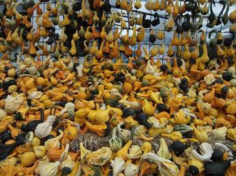 Keywords: decorative pumpkins pumpkin yellow black white small decoration form vegetables