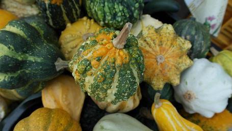 Keywords: decorative squashes pumpkins green autumn autumn decoration thanksgiving vegetables diversity varieties decorative colorful yellow white