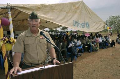 | Keywords: Dedication Ceremony in Uganda DVIDS153807.jpg en Col Ron Anderson from the Combined Joint Task Force - Horn of Africa speaks at a dedication ceremony at St Theresa secondary school in Lira Uganda Feb 23 Service members from the Combined Joint Task Force - Horn of Africa attended the ceremony marking the the completion of a 500 000 project funded by CJTF-HOA The project provided two new student dormitories to house 300 students a staff house new latrines three water harvesting tanks and new solar panels for a computer laboratory 2009-02-23 Petty Officer 2nd Class Jesse Awalt https //www dvidshub net/image/153807 090213-N-+++++-855 2009-02-27 09 30 LIRA UG PD-USGov-Military-Navy Combined Joint Task Force - Horn of Africa Images from DoD uploaded by Fæ |