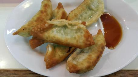 Keywords: Deep fried gyoza.jpg en A plate of deep fried gyoza with some soy sauce 2015-05-03 18 50 28 own Douglas Perkins other versions cc-zero Uploaded with UploadWizard Jiaozi Taken with Samsung Galaxy Note 4