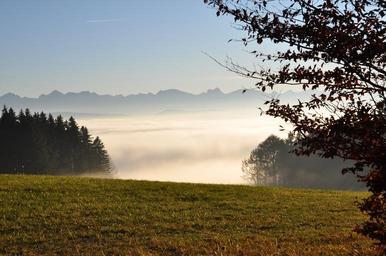 Keywords: deep mist allgäu auerberg panorama mountains meadow