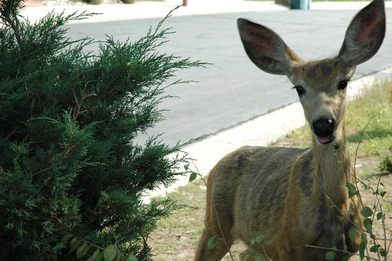 Keywords: deer deer in the headlights animal wildlife outdoor alert wild animal posing big ears