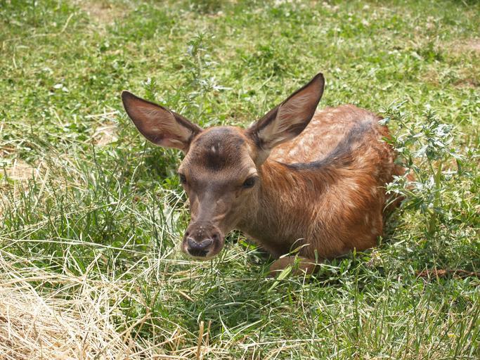 Keywords: deer green kid nature green grass sunshine bambi resting location