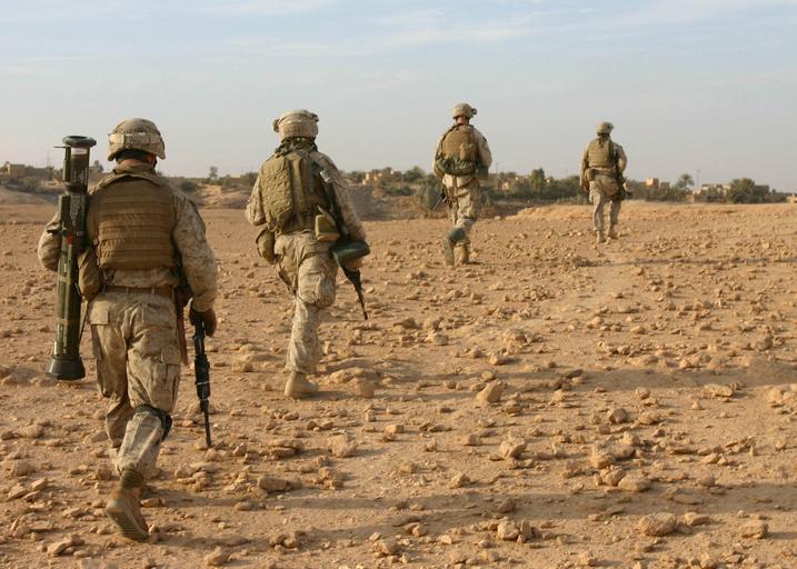 | Keywords: Defeating IEDs DVIDS14446.jpg en Minutes after discovering an improvised explosive device and destroying an insurgent bomb placement team a group of heavily-armed Marines from Battalion Landing Team 1st Bn 2nd Marines head back to their vehicles after searching the area around the engagement site near Forward Operating Base Hit Iraq Jan 2 2006 The patrol was in support of the 22nd Marine Expeditionary Unit Special Operations Capable as it continues its ongoing counterinsurgency efforts in Iraq's Al Anbar province with the 2nd Marine Division 2006-01-02 https //www dvidshub net/image/14446 14446 2006-01-12 12 44 IQ PD-USGov 22nd Marine Expeditionary Unit Images from DoD uploaded by Fæ |