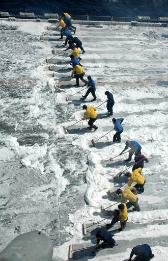 Keywords: Defense.gov News Photo 060820-N-3455P-002.jpg en Navy sailors use push brooms to clean the flight deck after a test of the flight deck aqueous film-forming foam system aboard the USS Boxer LHD 4 as the ship operates in the Pacific Ocean on Aug 20 2006 The amphibious assault ship is part of Expeditionary Strike Group Five which is participating in their joint task force exercise off the coast of Southern California in preparation for an upcoming Western Pacific deployment 060820-N-3455P-002 Navy http //www defense gov/photos/newsphoto aspx newsphotoid 8303 2006-08-20 en Seaman Paul Polach U S Navy PD-USGov-Military-Navy Defense gov news media for August 2006 Import by User Slick-o-bot/Defense gov News Photos Taken with Nikon D70 Sweeping Aboard USS Boxer LHD-4 |