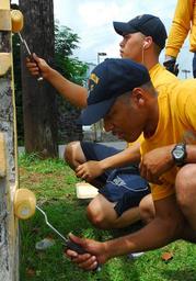 | Keywords: Defense.gov News Photo 090624-N-9698C-033.jpg en U S Navy Petty Officer Tomas Barnes and Petty Officer 2nd Class Hanale Koeger assigned to the guided-missile frigate USS Crommelin FFG 37 paint the side of a baseball dugout during a community service project on the island of Pohnpei in the Federal States of Micronesia on June 24 2009 The Crommelin visited the island for a port visit while supporting U S Coast Guard fisheries enforcement in Oceania during a deployment in the western Pacific Ocean 090624-N-9698C-033 http //www defense gov/photos/newsphoto aspx newsphotoid 11416 2009-06-24 en Petty Officer 2nd Class John Wallace Ciccarelli Jr U S Navy PD-USGov-Military Check categories 2012 August 18 Import by User Slick-o-bot/Defense gov News Photos Defense gov photos requiring renaming 24 June June 2009 Micronesia Taken with Nikon D200 Images from United States Navy to check |