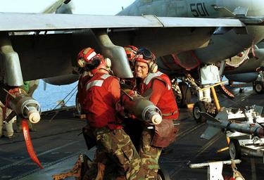 | Keywords: Defense.gov News Photo 011007-N-5902H-002.jpg en Aviation ordnancemen on the USS Enterprise CVN 65 muscle ordnance into place as aircraft are readied for strike missions against al Qaeda terrorist training camps and military installations of the Taliban regime in Afghanistan on Oct 7 2001 during Operation Enduring Freedom The carefully targeted actions are designed to disrupt the use of Afghanistan as a base for terrorist operations and to attack the military capability of the Taliban regime 011007-N-5902H-002 Navy http //www defense gov/photos/newsphoto aspx newsphotoid 3653 2001-10-07 en Lt j g Douglas E Houser U S Navy PD-USGov-Military-Navy Defense gov news media for October 2001 Import by User Slick-o-bot/Defense gov News Photos Aboard USS Enterprise CVN-65 USS Enterprise CVN-65 Operation Enduring Freedom |
