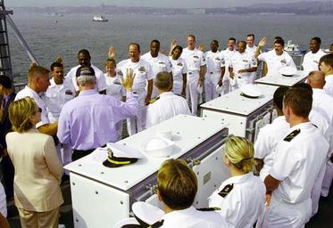 | Keywords: Defense.gov News Photo 000704-N-1012K-104.jpg en President Bill Clinton in blue shirt reads the oath of re-enlistment to a group of sailors aboard the USS Hue City CG 66 on July 4 2000 in New York Harbor The president is aboard the Ticonderoga class cruiser to review naval units from around the world for the International Naval Review 2000 First Lady Hillary Rodham-Clinton watches the ceremony on the president's left 000704-N-1012K-104 Navy http //www defense gov/photos/newsphoto aspx newsphotoid 2917 2000-07-04 en Petty Officer 2nd Class J B Keefer U S Navy PD-USGov-Military-Navy Defense gov news media for July 2000 Import by User Slick-o-bot/Defense gov News Photos Defense gov photos requiring renaming USS Hué City CG-66 Bill Clinton in 2000 Hillary Rodham Clinton in 2000 Bill and Hillary Clinton Hillary Rodham Clinton in New York Hillary Rodham Clinton with military people Bill Clinton with military people Photographs of standing men Photographs of standing men seen from behind Hillary Rodham Clinton standing seen from behind July 2000 in New York 2000 in New York City United States Navy |