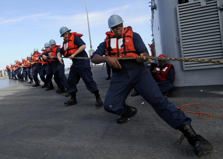 Keywords: Defense.gov News Photo 090217-N-7280V-064.jpg en U S Navy Seaman Darrell Moore right assigned to the deck department aboard the amphibious command ship USS Blue Ridge LCC 19 and other sailors pull on a messenger line during an underway replenishment with the Military Sealift Command supply ship USNS Pecos T-AO 197 while in the Pacific Ocean on Feb 17 2009 090217-N-7280V-064 http //www defense gov/photos/newsphoto aspx newsphotoid 10970 2009-02-17 en Petty Officer 3rd Class Daniel Viramontes U S Navy PD-USGov-Military Import by User Slick-o-bot/Defense gov News Photos Defense gov photos requiring renaming Taken with Nikon D300 Images from United States Navy to check USS Blue Ridge LCC-19 |