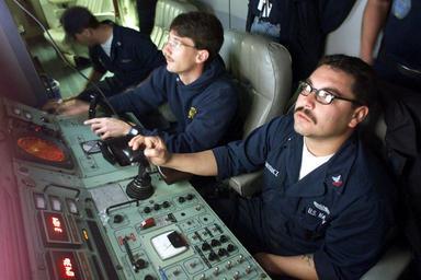 | Keywords: Defense.gov News Photo 000203-N-5961C-002.jpg en Petty Officers 2nd Class Robert Rodriguez right and Robert Duncan left watch the video monitors as they search the ocean floor for the flight data recorder from the downed Alaska Airlines Flight 261 off the coast of Ventura County Calif on Feb 3 2000 Rodriguez is piloting the SCORPIO a tethered unmanned work vehicle from the Navy's Deep Submergence Unit Unmanned Vehicle Detachment Duncan is the co-pilot and is responsible for the robotic hands of the SCORPIO The two Navy machinist's mates are controlling the submersible from the MV Kellie Chouest a Military Sealift Command Submarine Support Ship Rodriguez is from Amarillo Texas and Duncan is from Torrance Calif 000203-N-5961C-002 Navy http //www defense gov/photos/newsphoto aspx newsphotoid 2685 2000-02-03 en Petty Officer First Class Spike Call United States Navy PD-USGov-Military-Navy 2000 in California 2000 photographs 3 February February 2000 in the United States Import by User Slick-o-bot/Defense gov News Photos Kellie Chouest ship 1996 Male soldiers Men at work Men with glasses People of the United States in 2000 People using computers in the 2000s Scorpio ROV Military people on duty Military people in 2000 Men facing left and looking left Photographs of sitting men |