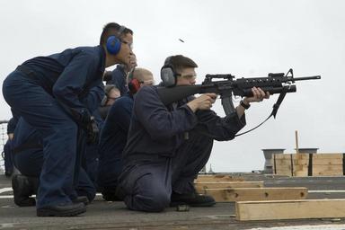 | Keywords: Defense.gov News Photo 090803-N-9123L-053.jpg en U S Navy Petty Officer 2nd Class Chaung Pha observes as Petty Officer 2nd Class Donipaul Briscoe fires an M-16 rifle during small arms firing aboard the guided-missile destroyer USS McCampbell DDG 85 while underway in the Pacific Ocean on Aug 3 2009 090803-N-9123L-053 http //www defense gov/photos/newsphoto aspx newsphotoid 11565 2009-08-03 en Petty Officer 2nd Class Byron C Linder U S Navy PD-USGov-Military Import by User Slick-o-bot/Defense gov News Photos Pacific Ocean Taken with Nikon D200 Aboard USS McCampbell DDG-85 M16 rifle with M203 Males with M203 USS McCampbell DDG-85 |