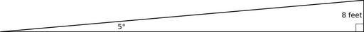 Keywords: Defining Trigonometric Functions Figure 1.svg High School Trigonometry Depicts a ramp with a five degree incline and eight foot height own Adrignola 2011-01-20 Cc-zero High School Trigonometry