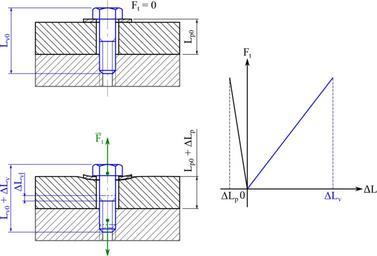 | Keywords: Deformation sous precharge assemblage visse.svg fr Déformation élastique d'un assemblage vissé sous l'effet de la précharge L<sub>v0</sub> longueur initiale de la vis ; ΔL<sub>v</sub> allongement de la vis sous précharge ΔL<sub>vl</sub> allongement de la partie lisse ΔL<sub>vf</sub> allongement de la partie filetée ; L<sub>p</sub> épaisseur initiale de la pièce ; ΔL<sub>p</sub> variation d'épaisseur de la pièce ; F<sub>t</sub> force de précharge en Elastic deformation of a screw assembly under the prestrain L<sub>v0</sub> initial length of the screw; ΔL<sub>v</sub> variation of the length of the screw under the prestrain ΔL<sub>vl</sub> stretching of the smooth part ΔL<sub>vf</sub> stretching of the threaded part; L<sub>p</sub> initial thickness of the part; ΔL<sub>p</sub> variation of the thickness of the part; F<sub>t</sub> strength fo prestrain 2013-03-20 own Cdang similar but with a bolt File Deformation sous precharge assemblage boulonne svg inkscape cdang Drawings of screws Elastic deformation Cc-zero |