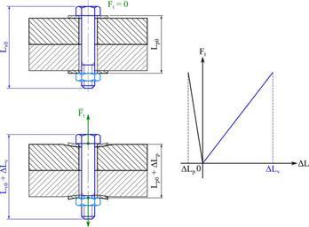 | Keywords: Deformation sous precharge assemblage boulonne.svg fr Déformation élastique d'un assemblage vissé sous l'effet de la précharge L<sub>v0</sub> longueur initiale de la vis ; ΔL<sub>v</sub> allongement de la vis sous précharge ; L<sub>p</sub> épaisseur initiale de la pièce ; ΔL<sub>p</sub> variation d'épaisseur de la pièce ; F<sub>t</sub> force de précharge en Elastic deformation of a bolt assembly under the prestrain L<sub>v0</sub> initial length of the screw; ΔL<sub>v</sub> variation of the length of the screw under the prestrain; L<sub>p</sub> initial thickness of the part; ΔL<sub>p</sub> variation of the thickness of the part; F<sub>t</sub> strength fo prestrain 2013-03-20 own Cdang similar but with a screw in a threaded bore File Deformation sous precharge assemblage visse svg inkscape cdang Drawings of screws Elastic deformation Bolts Cc-zero |