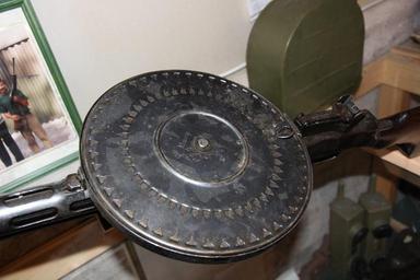 | Keywords: Degtyarev DP-27 Torpin Tykit 2.JPG en Pan magazine and rear sight of Degtyarev DP-27 light machine gun photographed in the Cannons of Torp museum fi Degtjarev DP-27 pikakiväärin lipas ja takatähtäin Torpin Tykit -museossa own MKFI 2011-07-06 Degtyarev light machine gun Pan magazines Museo Torpin Tykit Taken with Canon EOS 60D Taken with Canon EF-S 15-85mm F3 5-5 6 IS USM Files by User MKFI | ||||