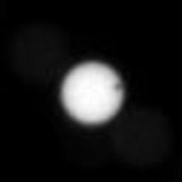 | Keywords: Deimos Mar 13 2004 from Spirit 7.jpg PD-USGov Credit NASA/JPL/Cornell Transit of Deimos across the Sun as seen from Mars Exploration Rover Spirit on March 13 2004 Times in the table below are Martian local solar time as given by JPL Original filename http //marsrovers nasa gov/gallery/all/2/p/068/2P132408391ESF1800P2671R8M1 JPG http //marsrovers nasa gov/gallery/all/2/p/068/2P132408391ESF1800P2671R8M1 HTML The timestamp built into the filename is 132408391 seconds since the J2000 0 epoch http //marsrovers jpl nasa gov/gallery/edr_filename_key html or March 13 2004 00 05 26 816 UTC the three-decimal-digit precision is of course not real 0 cellspacing 0 cellpadding 5 + Image sequence 1 2 3 4 5 6 7 8 - 13 54 11 13 54 20 13 54 30 13 54 40 13 54 50 13 54 59 13 55 09 13 55 19 http //marsrovers nasa gov/gallery/all/spirit_p068 html Spirit image gallery Sol 68 small images of the March 13 2004 transit are near the bottom of the page Photos by the Spirit rover Transit of Deimos |