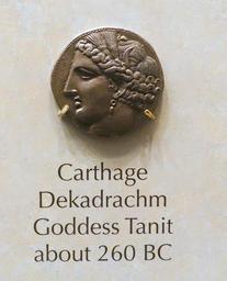 | Keywords: Dekadrachm, Carthage, Goddess Tanit, c. 260 BC - National Museum of American History - DSC00261.jpg en Exhibit in the National Museum of American History Washington DC USA Photography was permitted in the museum without restriction 2015-03-27 11 36 54 own Daderot other versions cc-zero Coins in the National Museum of American History Coins of Carthage Decadrachm Tanit | ||||