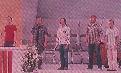 | Keywords: DEKT Wise Guys Abschlussgottesdienst 10.06.2007.jpg Die Wise Guys beim Abschlussgottesdienst des Deutschen Evangelischen Kirchentages 2007 am 10 Juni 2007 auf einer Video-Wand The Wise Guys at the closing ceremony at the DEKT 2007 on 10 June 2007 own own photo 10 06 2007 noebse Deutscher Evangelischer Kirchentag 2007 Wise Guys German a cappella group |