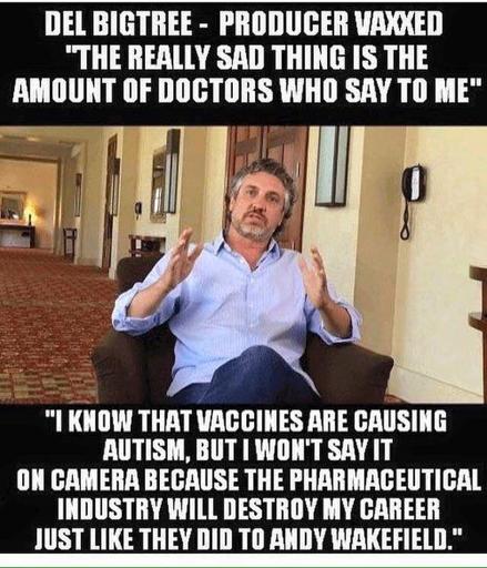 | Keywords: anti vaccine vaccination vax disease health poison population control needle syringe Del Bigtree - producer vaxxed - the really sad thing is the amount of doctors who say to me, I know that vaccines are causing autism but i wont say it on camera because the pharmaceutical industry will destroy my career just like they did to Andy Wakefield. Anti Vaccination meme collected by A.J. Wilson of iPressThis at FlatEarth.Online, made by others. Del Bigtree - producer vaxxed - the really sad thing is the amount of doctors who say to me, I know that vaccines are causing autism but i wont say it on camera because the pharmaceutical industry will destroy my career just like they did to Andy Wakefield. Anti Vaccination meme collected by A.J. Wilson of iPressThis at FlatEarth.Online, made by others. |