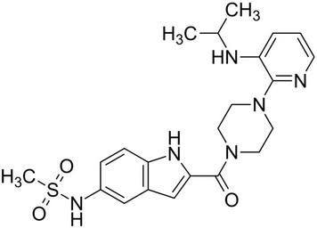 | Keywords: Delavirdine 200.svg validSVG Structure of N- 2- 4- 3- isopropylamino pyridin-2-yl piperazine-1-carbonyl -1H-indol-5-yl methanesulfonamide Own 2014-05-11 Emeldir <span class signature-talk >talk</span> Chemical structure verified https //upload wikimedia org/wikipedia/commons/3/30/Delavirdine_200 svg 1S/C22H28N6O3S/c1-15 2 24-19-5-4-8-23-21 19 27-9-11-28 12-10-27 22 29 20-14-16-13-17 26-32 3 30 31 6-7-18 16 25-20/h4-8 13-15 24-26H 9-12H2 1-3H3 WHBIGIKBNXZKFE-UHFFFAOYSA-N 136817-59-9 Synonyms <small><nowiki>1-3- Isopropylamino -2-pyridyl-4- 5-methanesulfonamidoindol-2-yl carbonyl-piperazine monomethanesulfonate 1-3- 1-Methylethyl amino-2-pyridinyl-4-5- methylsulfonyl amino-1H-indol-2-ylcarbonylpiperazine Delavirdina mesilato de Delavirdine Delavirdine Mesilate Delavirdine Mesylate N-2-4-3- propan-2-ylamino pyridin-2-ylpiperazine-1-carbonyl-1H-indol-5-ylmethanesulfonamide Rescriptor U-90152 U-90152S</nowiki></small> PD-chem Delavirdine |